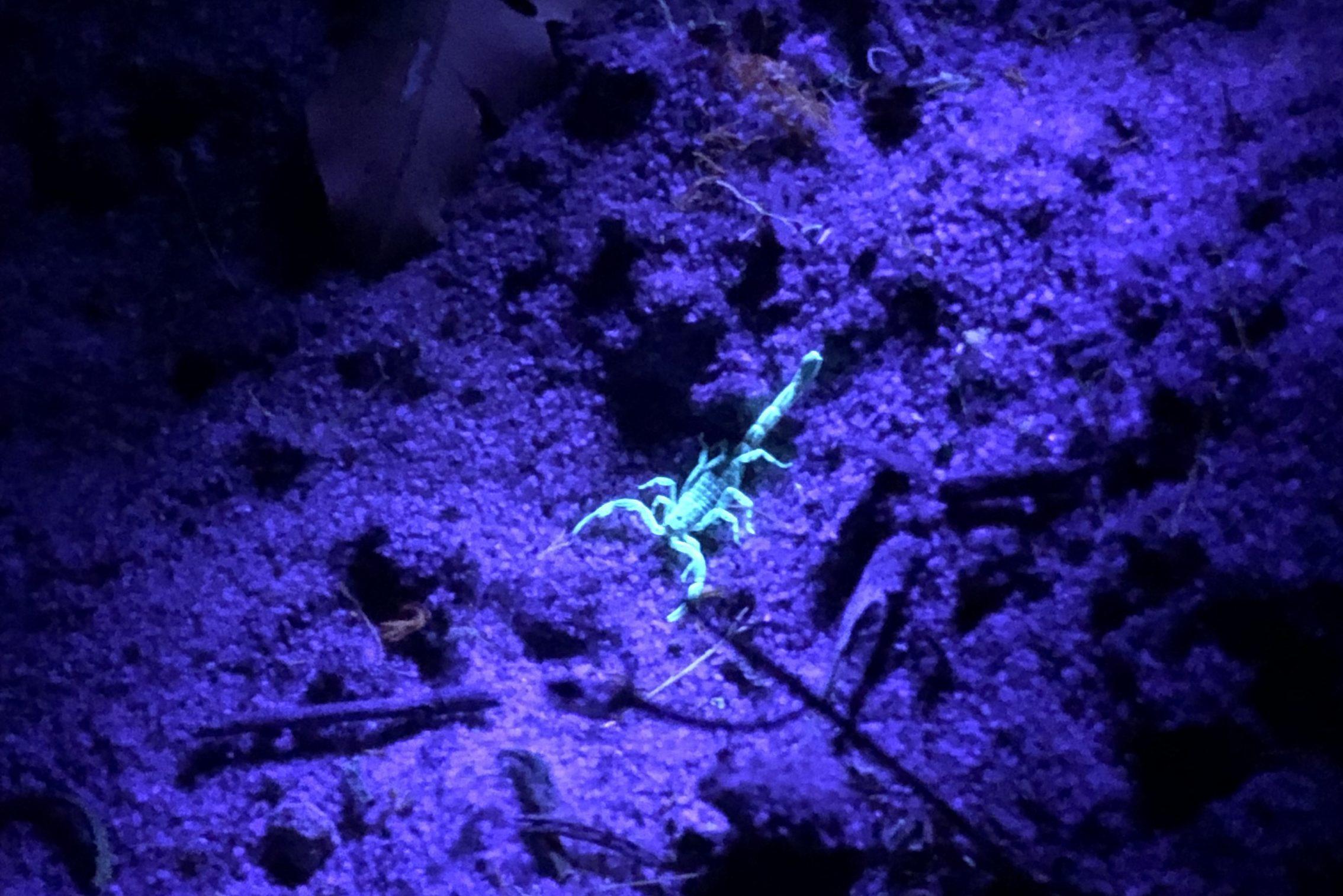 You may have heard that some animals glow under ultraviolet (UV) light. Maybe you read about fluorescent mammals in The Conversation, or saw our own post last summer about our disco-loving scorpions? It is this hidden feature that inspired Mural Nomad’s PJ when developing the concept for this double mural.