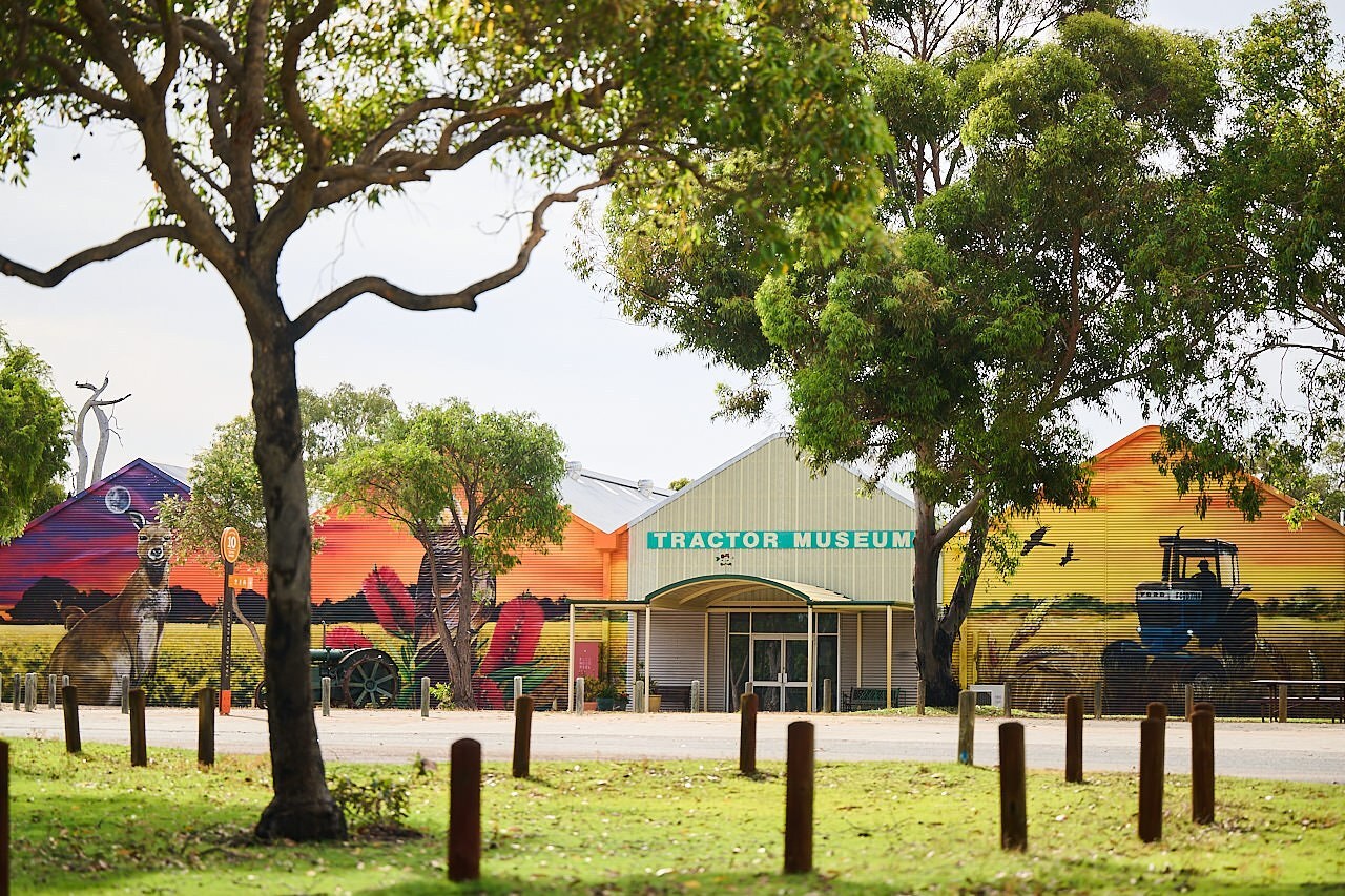 Mural Nomad, the artist behind the Tractor Museum of WA's beautiful big agricultural artwork, recently completed a wrap-around piece at the Woodland Reserve Interpretive Centre.