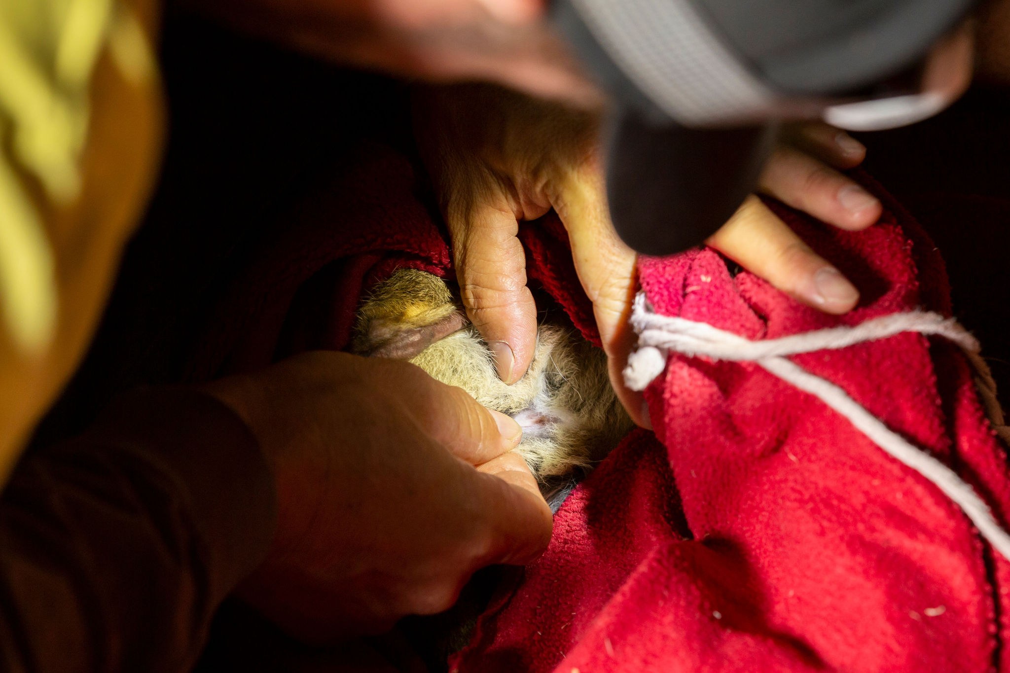 Once the examination is completed, animals have a small square of hair shaved from above their tail to indicate they have been processed during the night's survey.