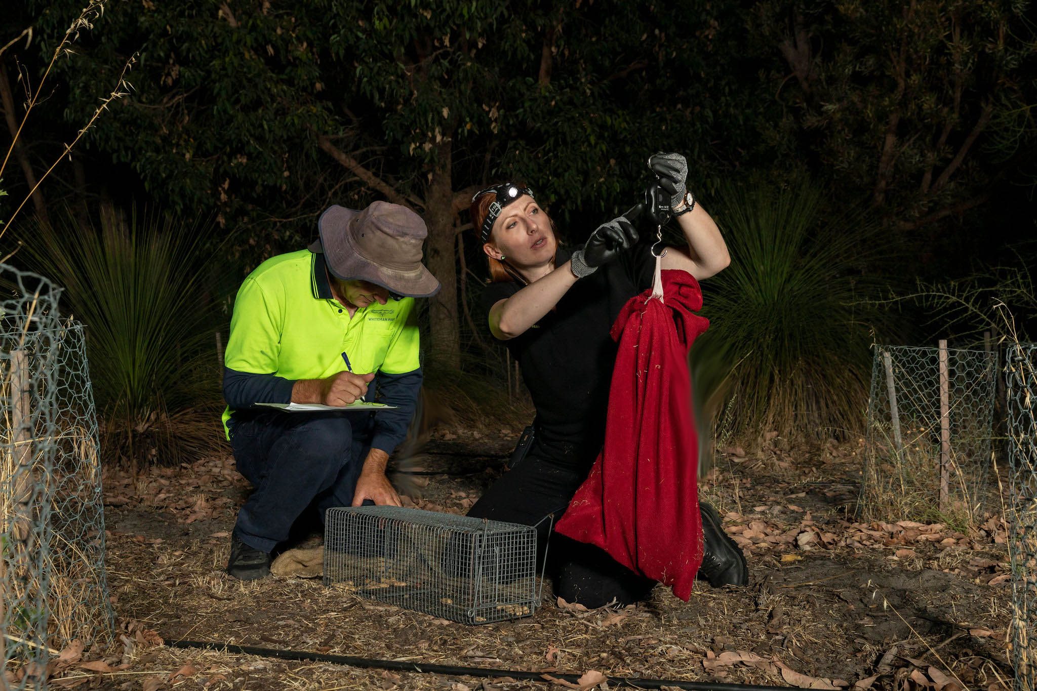 Our fauna monitoring program involves collecting information about the woylie (Bettongia penicillata) and quenda (Isoodon obesulus) populations in Woodland Reserve at the same time each year. This allows us to analyse if there are any significant change to their health over time and gauge population growth or decline, which is particularly important for the conservation of the Critically Endangered woylie.