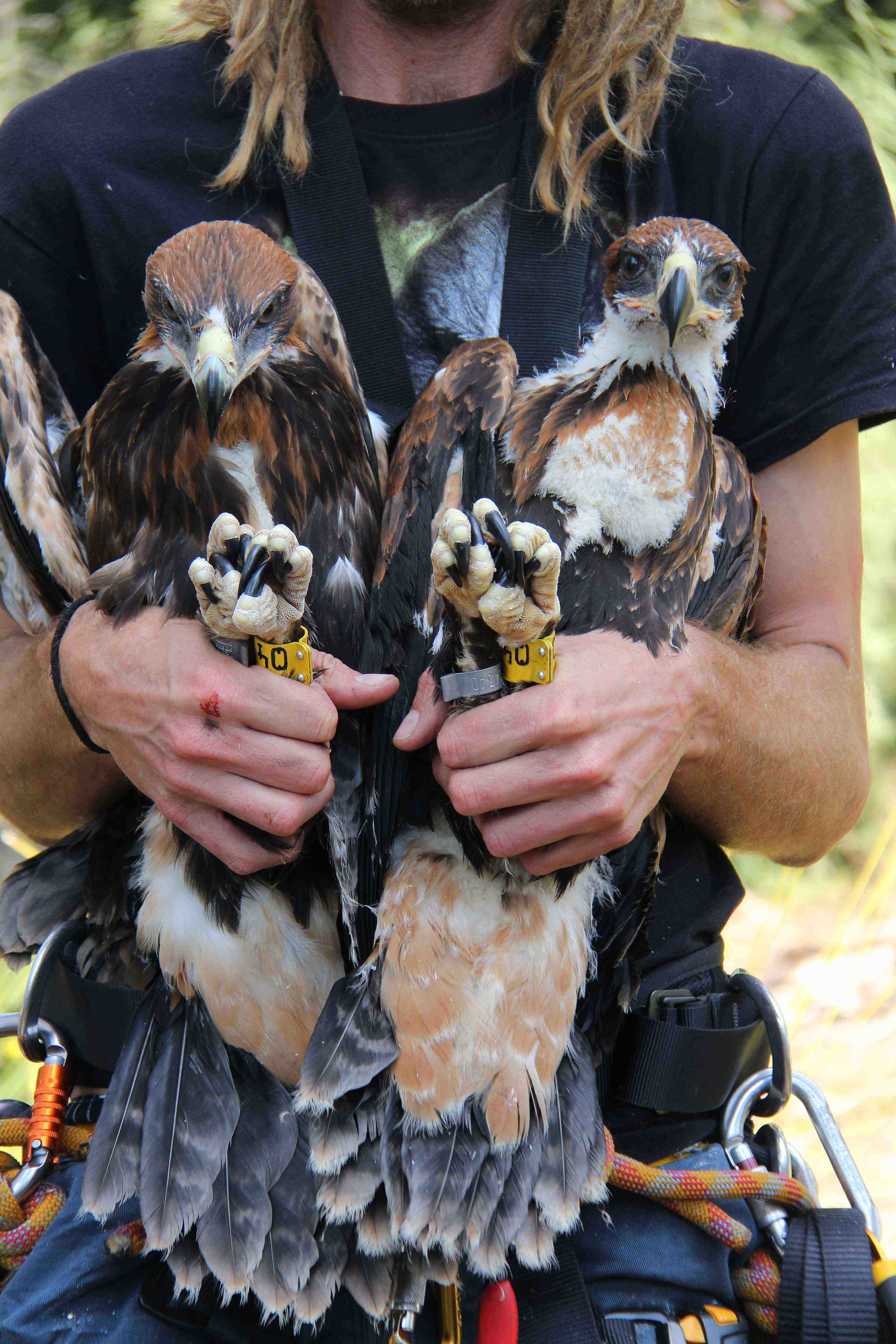 Images (L-R): Eaglets atop their nest; 2018's eaglets soon after hatching; the 2018 eaglets after banding (all photos courtesy of S. Cherriman).