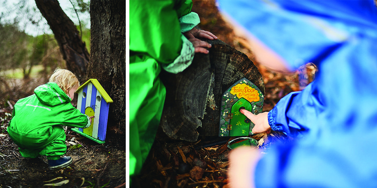 Don't let a little bit of rain stop you from getting outdoors with the kids - wrap them up in their raincoats, pop on those wellies and get outside to enjoy some wet weather exploring in the Children's Forest! It's amazing how different the bushland looks with a bit of rain, and its no reason to not enjoy the fresh outdoor air and go in search of fairy doors and native bees!